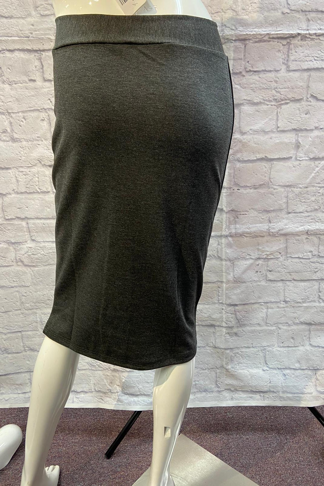 Easy to wear, pull on dressy pencil skirt. Covers the knee for many. 25” long. Fabric keeps it’s color, does not fade.
