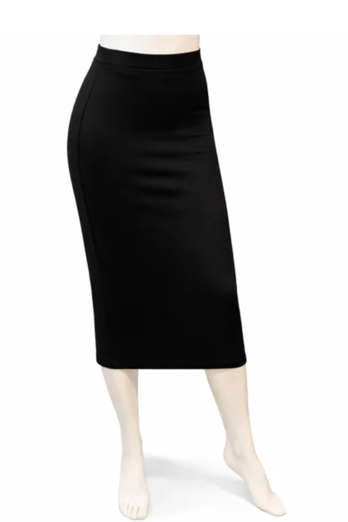 Super soft, fitted midi skirt. No slit. Pre-shrunk.